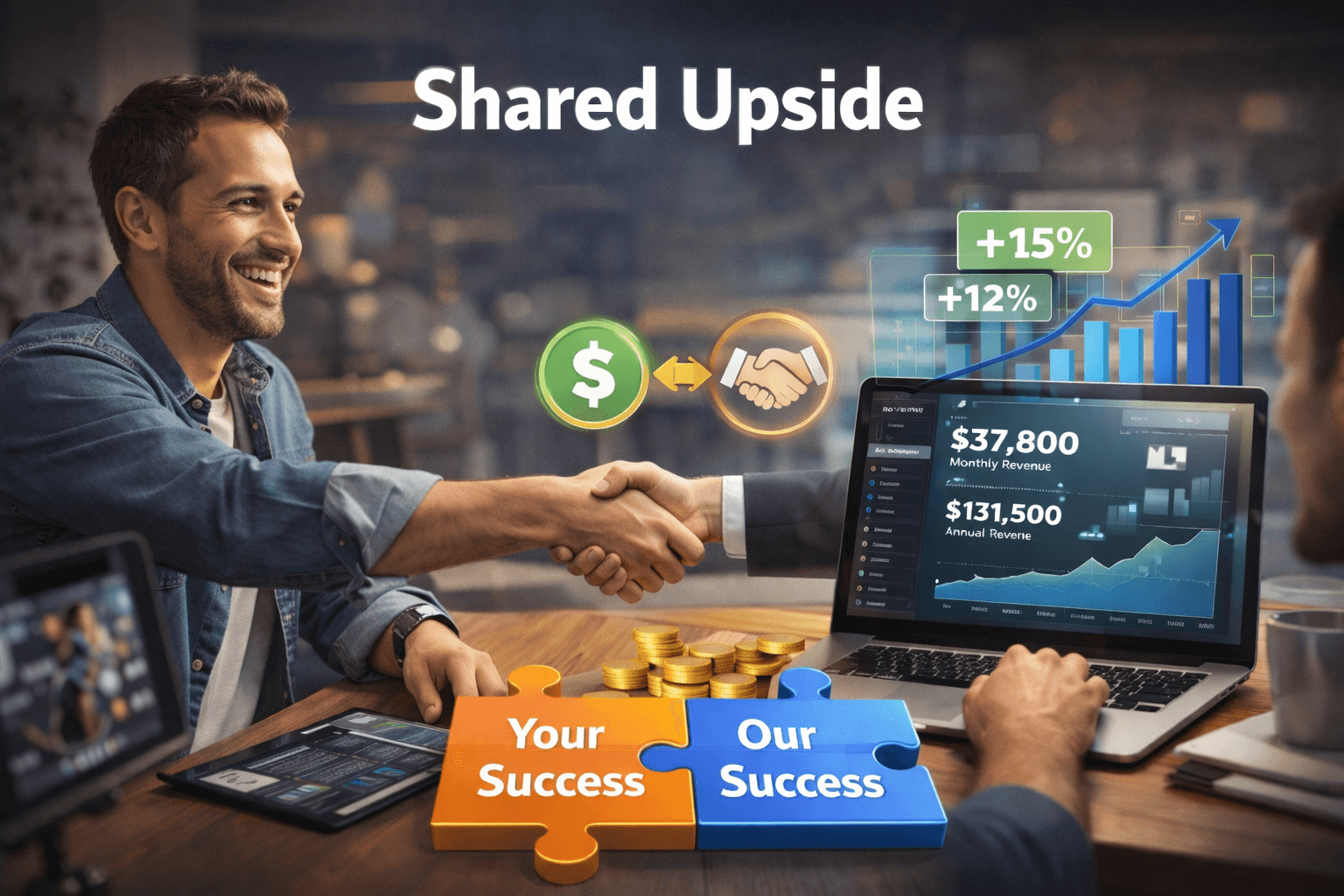 Revenue is shared: our success is tied to your product’s success—no upfront fees.
