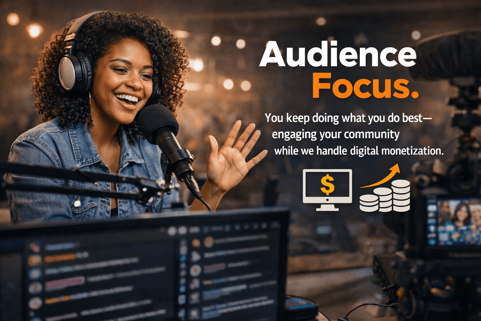 You keep doing what you do best—engaging your community while we handle digital monetization.