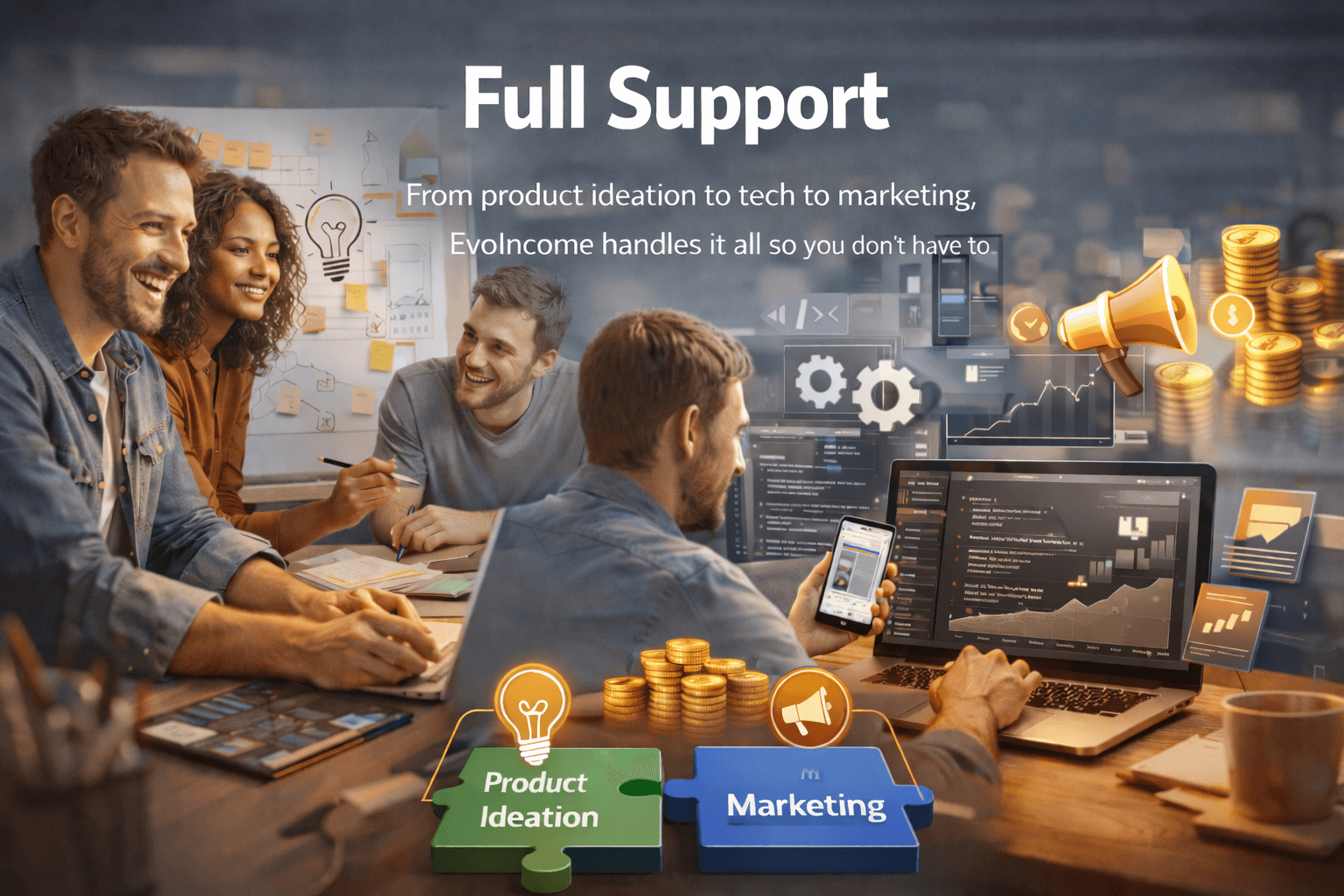 From product ideation to tech to marketing, EvoIncome handles it all so you don’t have to.